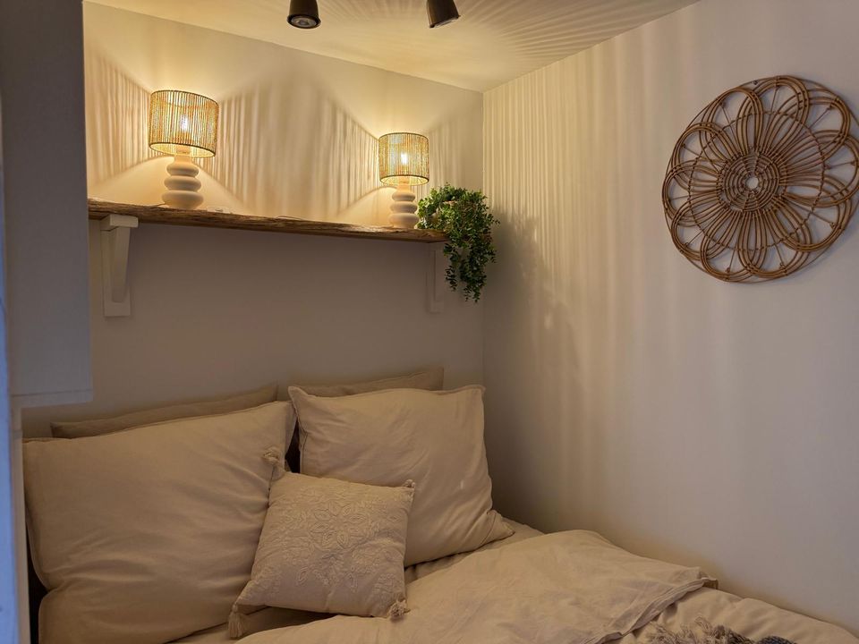 Droomz BedStay ist ein romantisch eingerichtetes Gästehaus in Sint Maartensbrug, nahe dem Strand. Mit warmen Farbtönen, natürlichen Materialien, einem charmanten Alkovenbett und einem privaten Garten mit überdachter Veranda ist es der perfekte Ort zum Ent