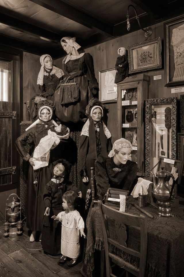 Op de de begane grond vindt je was- en strijkgerei, speelgoed van weleer, 18e en 19e eeuws textiel, merklappen, 'Nuttige- en Schoone Handwerken' , compleet met een collectie zilveren naaigerei, volkskunst, school en onderwijs. Een knus boeren keukentje is ingericht met een knipoog naar Staphorst en in het washok doet de dienstmeid de was. Op de bovenverdieping is een kraamkamer ingericht waar veel te zien is rondom geboorte, bevalling en baby's zoals het vroeger ging, zoals bijvoorbeeld de baker. Maar ook doopgoed, babykleding, linnengoed en zeldzame medische instrumenten maken deel uit van de collectie.