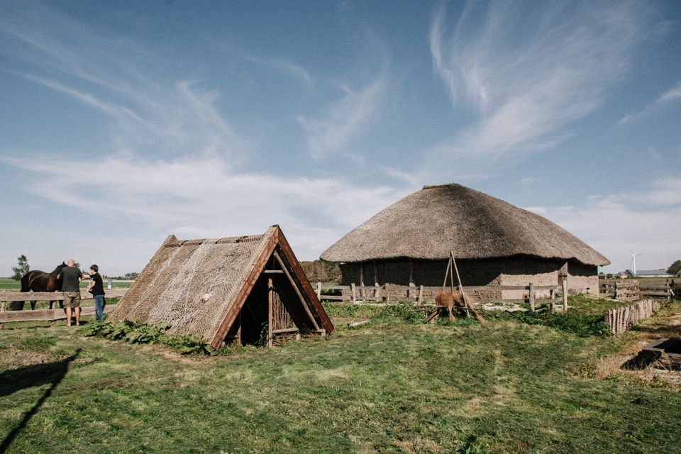 Ich fahre an mehreren auffälligen Warftendörfern, wie Hallum, Ginnum und Firdgum vorbei. In der früheren Dorfschule von Firdgum richtete der Landwirt Yeb Hettinga 2001 ein Museum ein. Nach dem Umpflügen seiner Ackerflächen machte er sich mit einem Metalldetektor auf den Weg und fand dabei Jahrhunderte alte Schmuckstücke, Knöpfe, Gürtelschnallen und Münzen. Vor dem Museum steht die Rekonstruktion eines sogenannten „Zodenhuis“, diese Art von Häusern stand vom vierten bis zum achten Jahrhundert in Friesland. Am Herdfeuer, umgeben von Werkzeugen und Wänden aus aufgestapelten Lehmplaggen, wähne ich mich in die Vergangenheit zurückversetzt.