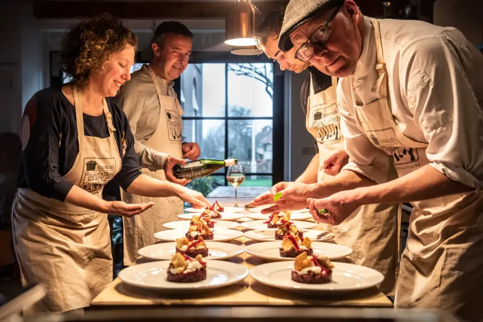 Terschelling – In der Kochstudio des Insulaners Flang dreht sich alles um Watt-Produkte und Feuer. Muscheln, Austern und andere Fänge kommen über dem Feuer in den Topf. Brandaan-Brot mit Wildsammlerbutter und Algen-Tapenade gehören dazu. Du kochst immer mit Zutaten von der Insel. Wer möchte, geht mit Flang hinaus in die Natur, um zu sammeln, was sie hergibt. Aber auch ohne Fund sitzt du gut: trocken am Feuer, mit den Aromen und Geschichten der Insel.