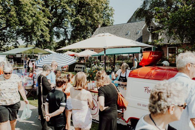 Er is iedere markt een kinderactiviteit, er is live muziek en andere nevenactiviteiten Er is ook gelegenheid te wandelen door de mooie tuinen en koffie-/theedrinken in het koetshuis van Ewsum .