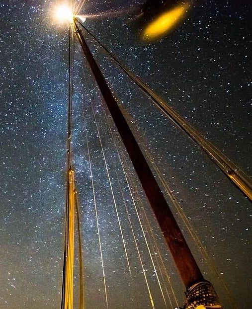 Op kerstavond zeilen we de duisternis in. De haven lichten achter ons, de nacht strekt zich uit boven het Wad — stil, weids en wonderschoon. We varen in stilte over het donkere water, ver van het kunstlicht, waar de sterren nog echt fonkelen. Het Wad is in deze tijd van het jaar rauw en puur – de wind fris, de sfeer verstild. Een avontuurlijke én bezinnende ervaring, perfect voor kerstavond.