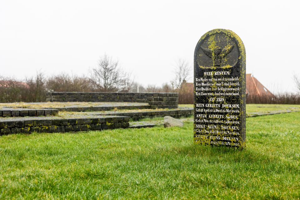 Bei Kinnum überquere ich den Deich, um durch die Polderlandschaft zu wandern. Ein ländliches Gebiet mit vielen Bauernhöfen und dem Himmel voller Vögel, die eifrig Insekten fangen. Am Stryper Kerkhof angekommen lese ich die beeindruckende Geschichte dieser Grabstätte. Hier werden schon seit 900 nach Christus Menschen begraben. Eine besondere Stelle also, mit einer langen Geschichte. Vom Friedhof aus wandere ich durch das hübsche Dorf Midsland, wo ich mir im Het Witte Huuske ein schnelles Mittagessen gönne. Suppe und Brot, dazu Kaffee. Gestärkt ziehe ich weiter.