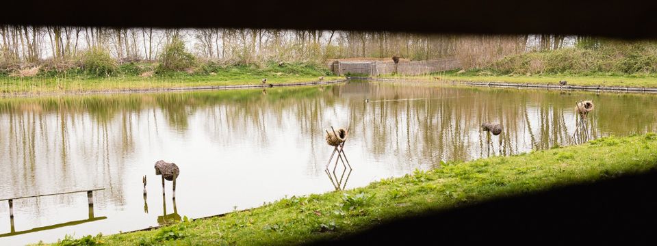 Four trap pipes surround the pond. Here you can see how ducks used to be caught for dinner. Today, the birds are ringed here for scientific research. This historic site continues to contribute to our understanding of birds and nature.