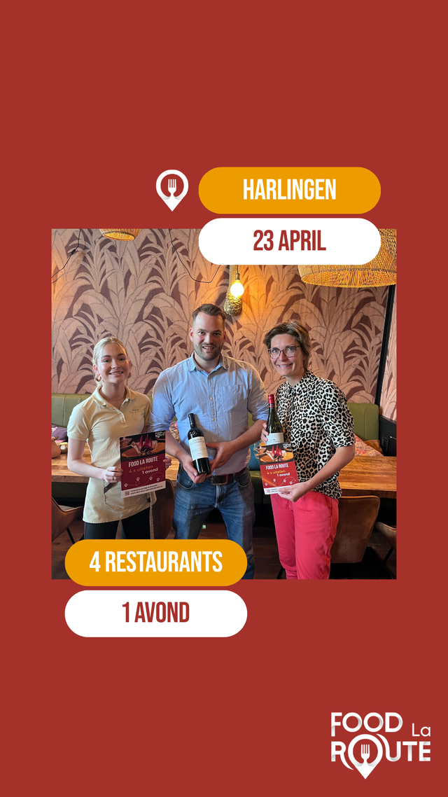 In totaal zijn er 4 smaakvolle gangen met een bijpassende drank. De deelnemende restaurants in Harlingen zijn: Grand cafe De Reus, Zeezicht, Brasserie Braam en Grand cafe De Zaak.