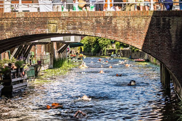 Recreatieve open water zwemtocht door de wateren van de historische binnenstad van Appingedam. De afstand van de zwemtocht bedraagt ongeveer 2800 meter.