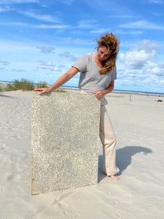 Tosca makes art from jut plastic on Terschelling. She gets her plate material from De Jutfabriek and she makes the most beautiful illustrations on it. By buying such an artwork you easily get a few kilos of plastic from the island and you have a beautiful memory of a nice place.