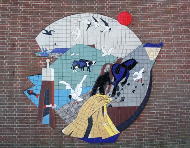 You can still find works by the De Ploeg artists in many, sometimes unexpected, places along the Wadden coast in Groningen. In mosaics on schools and other buildings, for example. The Groningen landscape is also featured in these mosaics. The work of art that Jan van der Zee created for elementary school F.H. Jansenius de Vries in Warffum in 1960 and his Wilde Zwanen in Usquert are both good examples. So be sure to include them in your route when you're walking or biking through the area.