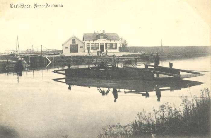 As early as 1849, the board of the new polder decided that a ferry service from the polder to the Koegras was needed. The ferry was constructed on the west side of the Anna Paulownapolder. In 1908, Klaas Keuris became the 'ferry master' at the crossing over the North Holland Canal from the Anna Paulownapolder to the Koegraspolder. He came from Van Ewijcksluis and moved to the house near the ferry in August 1908 to start working as a ferryman from 1 September. The regulations stipulated that the ferry had to be operated from one hour before sunrise until 10 o'clock in the evening. But it often happened that Mr Keuris was called out of bed in the night by people on the other side to ferry them across. Around 1920, Mr Muntjewerf was ferry master.
