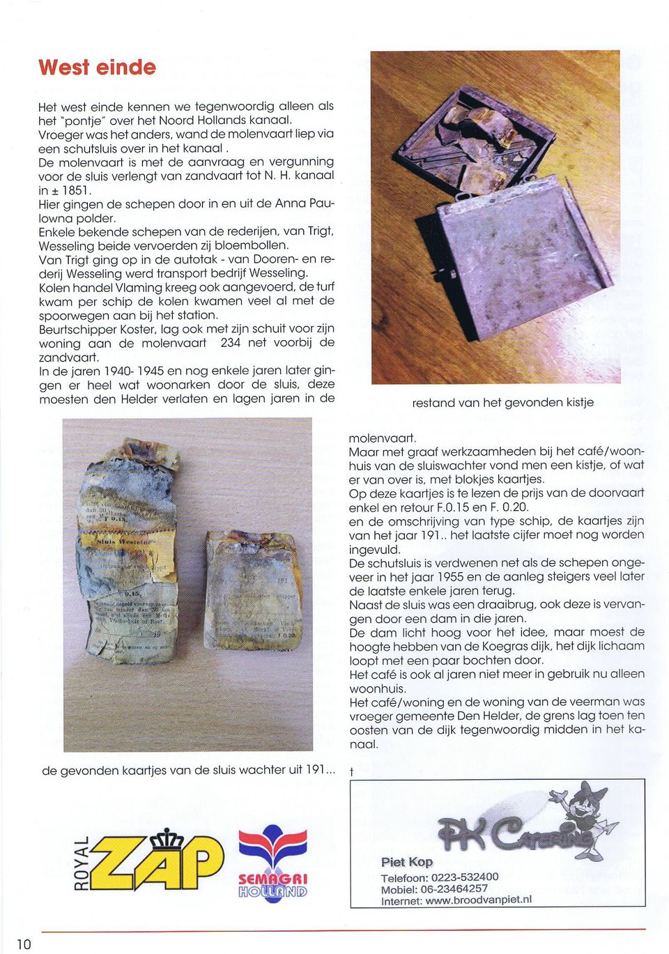 The excavation of the Molenvaart was completed in 1852. In 1863, a lock with a bascule bridge was built. The connection between the Molenvaart and the canal was necessary because it was an important transport route for the flower bulbs. In 1892, J. Langedijk was employed as the lock and bridge keeper by the municipality of Anna Paulowna. Langedijk had a stone house with a café built on the canal side of the dike. This house was named Westeinde, after the western point of the polder. The café was visited by ship's crew, draught horse drivers and passers-by. In the years after 1920, truck drivers also became customers of the skippers' café. In 1946, Langedijk sold the house with café to J. Grin. He was appointed as a lock and bridge keeper in the service of the municipality of Anna Paulowna. Due to the reduction of shipping and the increase in truck transport, the municipal council decided in 1968 to remove the bascule bridge over the Molenvaart, close the lock and build a road over the former lock. In 1971, the house, of which the café part was no longer in use, was sold to C. van den Berg. This was officially the end of café West-Einde: a social meeting point for travellers and residents of the Anna Paulownapolder. Since 2018, the house has been restored and made energy-neutral by the current owner.