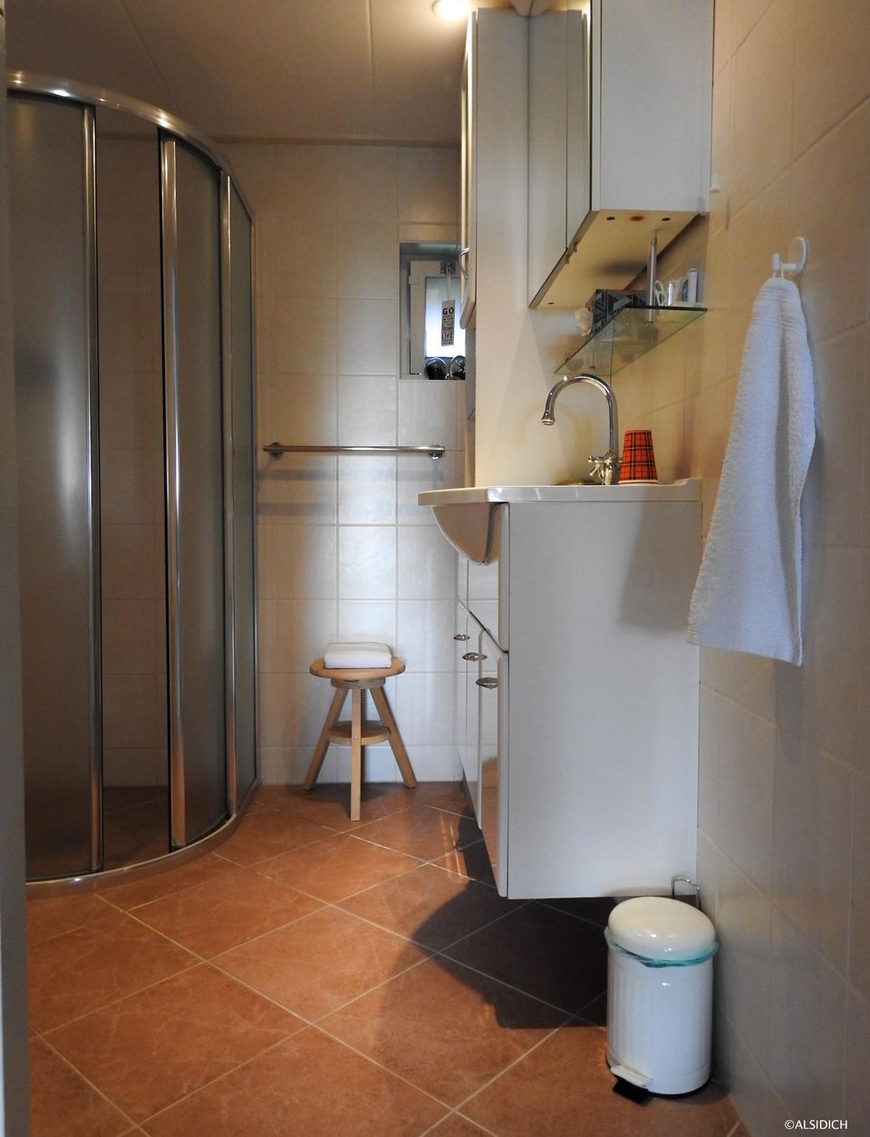 You'll stay in a wonderfully spacious guesthouse with a large living room and open-plan kitchen, a separate bedroom, and a bathroom with a shower, sink, and toilet.