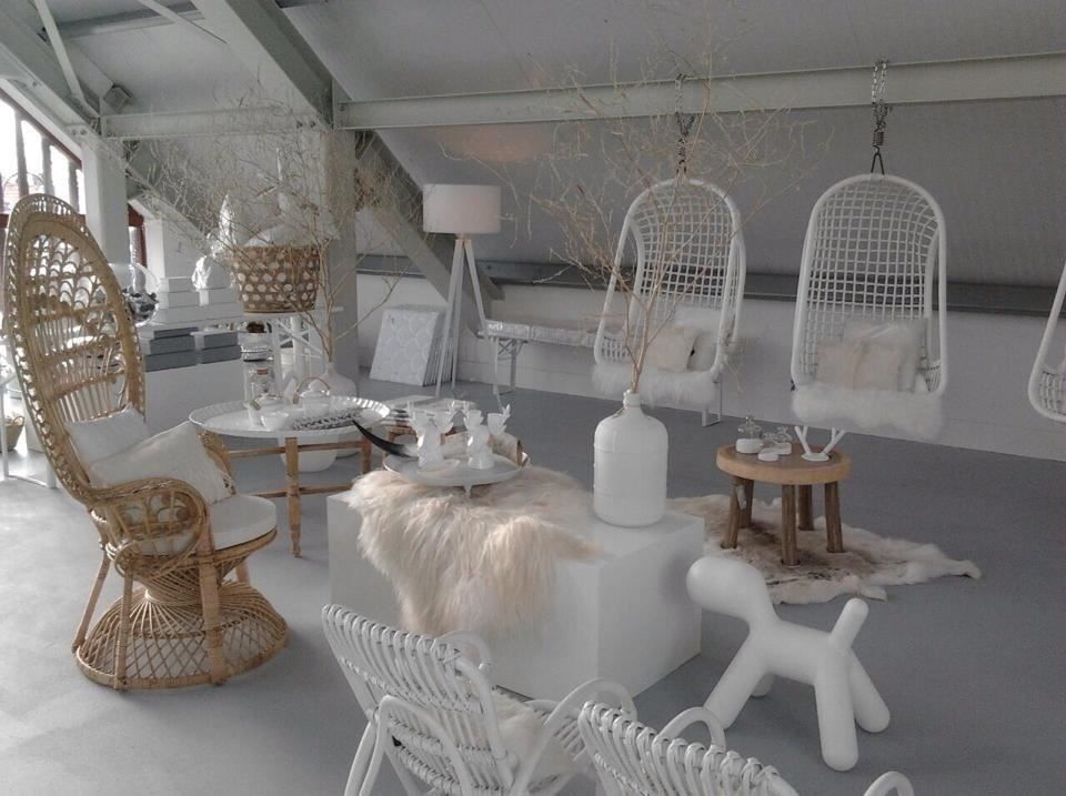 The store offers a wide collection of home accessories in white and natural tones. You'll find products from HK Living, &Klevering, Sukha, and Pols Potten, among others.