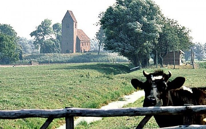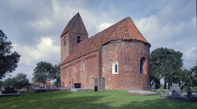 Een van de oudste Romaanse kerkjes in het noorden, gewijd aan de heilige Mauritius. De zadeldaktoren heeft een naar het schip gekeerde verdieping. Op de halfronde apsis liggen zogenaamde nonnen en monniken (halfronde dakpannen, hol en bol).
