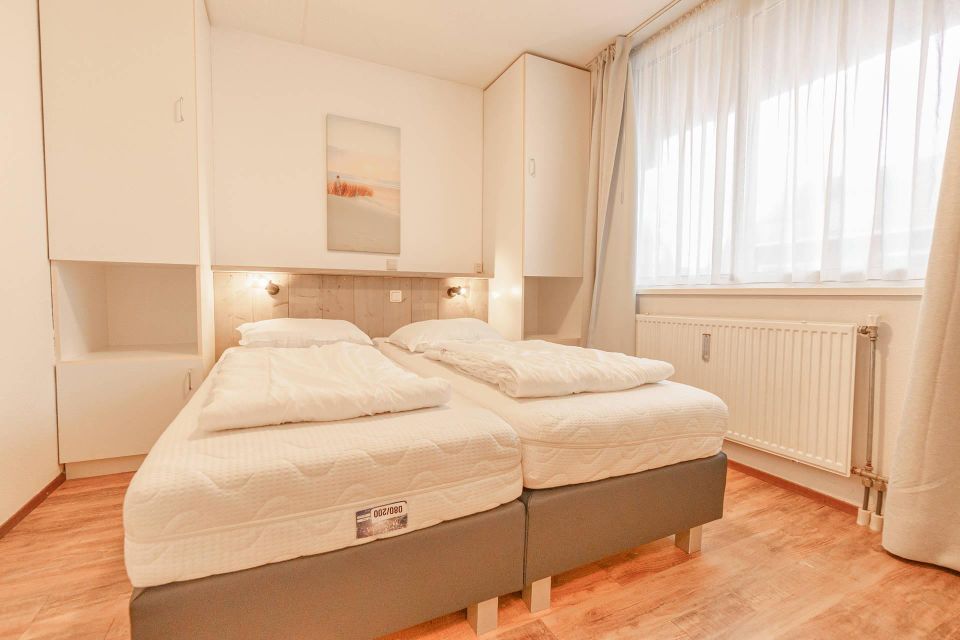Appartment for 2-4 persons and is located only 100 mtr from the beach. It has a 1 1/2 bedroom. Children have to go through the bedroom of their parents to get to their bunk bed. The appartement lies on a litte bungalowpark with an own entrance to the beach and a parkingplace.