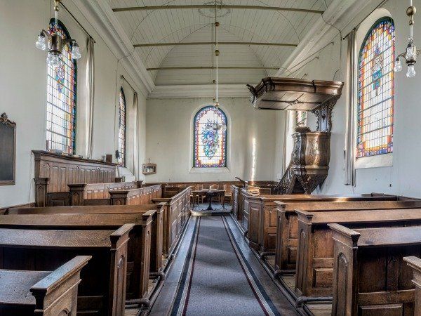 Op het raam in de oostgevel is “De Zaaier” weergegeven. Op de overige ramen komen bijbelse en allegorische symbolen voor: duif (Heilige Geest), zandloper, druivenrank, brandend braambos, bijbel, anker. Gebruik De kerk wordt nog enkele keren per jaar door een kerkelijke gemeente gebruikt, maar heeft de laatste jaren ook in toenemende mate een multifunctionele bestemming.