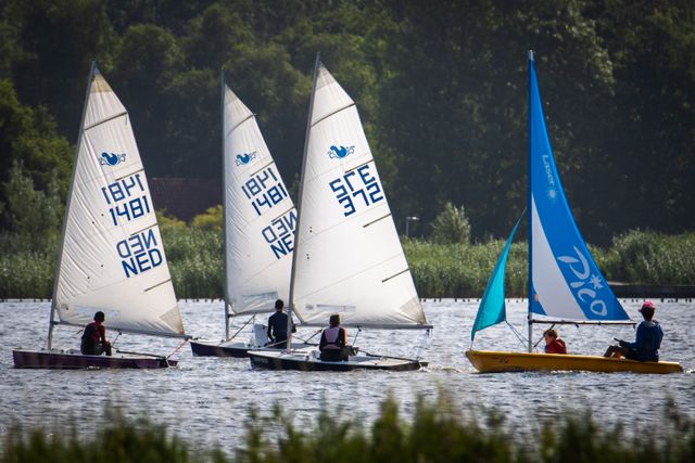 Sailing school Blauwestad is located in the marina of Midwolda on the Oldambtmeer. In addition to learning sailing or windsurfing, you can also rent sailing boats of the Polyvalk type here.