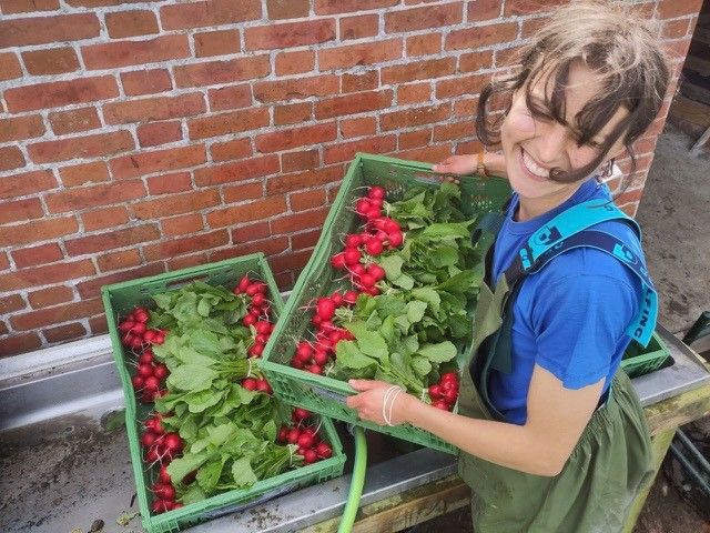 Wie hier rondloopt, ziet hoe dichtbij en puur lokaal voedsel kan zijn. Geen grote machines, maar handen in de aarde, slimme teelttechnieken en veel liefde voor het vak. De tuinderij werkt samen met inwoners uit de regio via een oogstdeel-systeem, waardoor er wekelijks mensen over het erf komen om hun groentepakket op te halen. Het zorgt voor een warme, verbonden sfeer op het terrein.