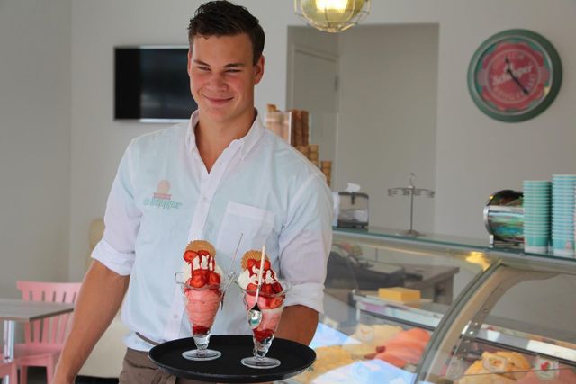 Our icecream is fresh and made in our open ice cream kitchen. We make our ice cream with fresh fruit, freshly squeezed juices, milk, cream and sugar. All our sorbet ice cream is lactose-free and almost all of our ice cream is gluten-free. Besides ice cream, we also have delicious coffee.
