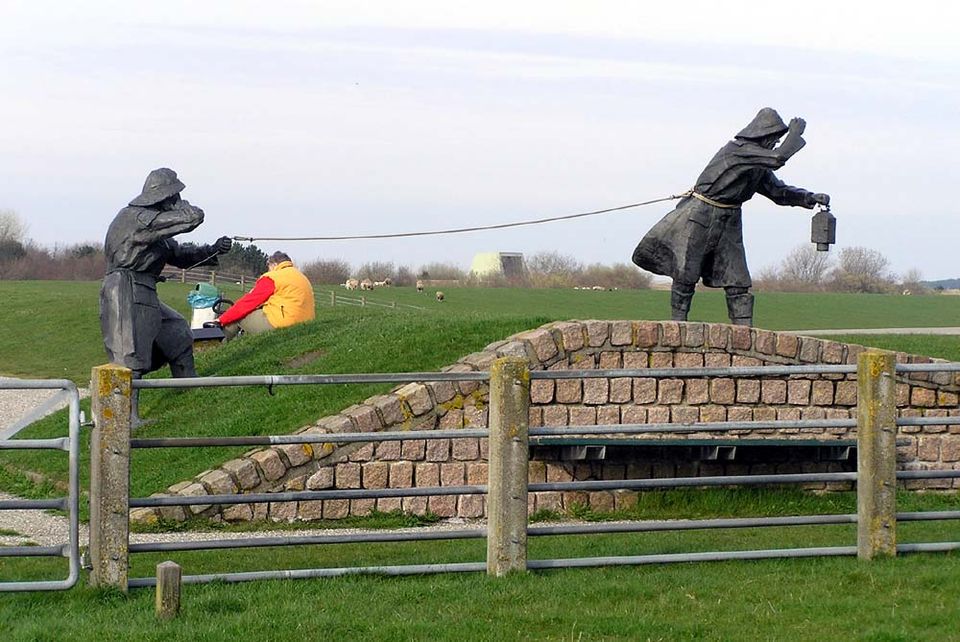 Vanuit Nes volgt u in westelijke richting de Verbindingsweg over een afstand van 3 km. Bij de Reeweg gaat u linksaf. Na 350 meter ziet u links een beeldengroep op de dijk. Ga hier de dijk over.