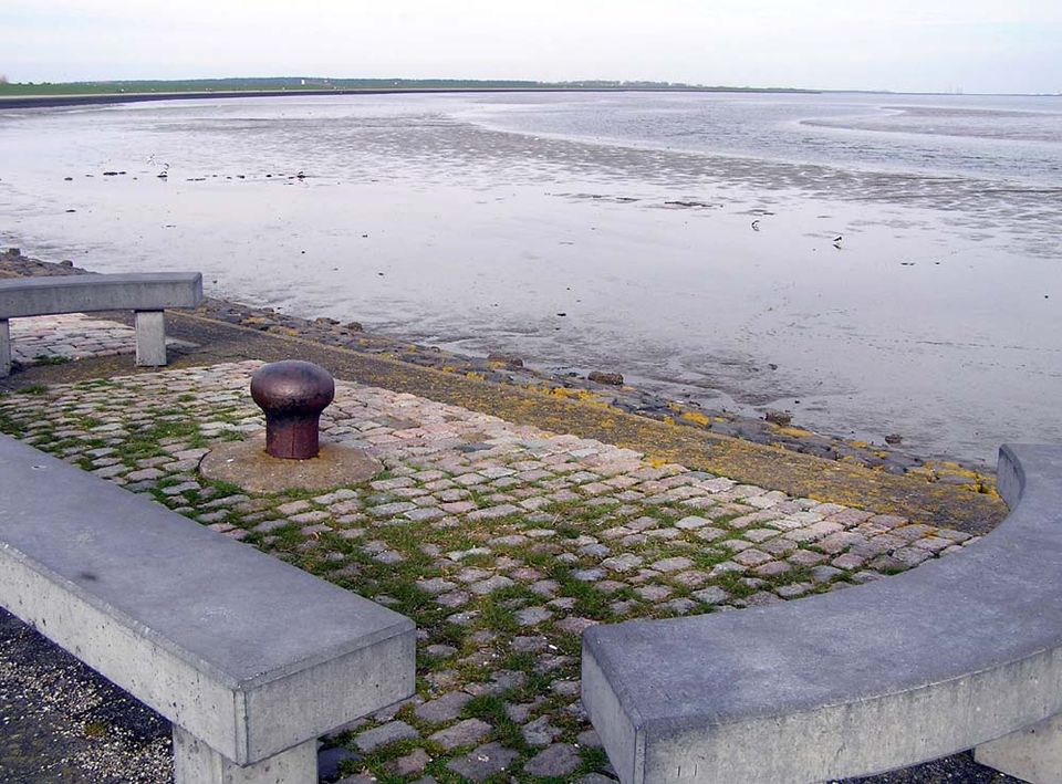 Kijk naar scholeksters, plevieren, wulpen, strandlopers en sterns bij dit uitzichtpunt over het wad.