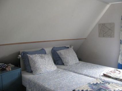 Simple bedroom with 2 single beds. Possibilities to make coffee, tea or soup. There is a sink with a kettle. Private bathroom in the hallway with b...