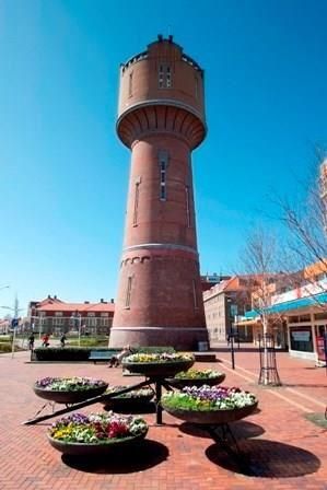 De watertoren van Den Helder In 1856 kreeg Den Helder als één van de eerste steden in Nederland een eigen watertoren en enkele meters waterleidingnet, gesitueerd in Huisduinen. Na zo’n 50 jaar was de toren op en had men belang bij een centrale en grotere toren. In 1908 werd de nieuwe watertoren midden in het centrum van Den Helder geplaatst. In 1959 kreeg de toren een grijze cement laag over de fraaie bakstenen heen geplamuurd om voor modern te kunnen doorgaan. Maar in 2005 is er toch teruggegrepen naar de stijl van 1908, de cement laag werd verwijderd en de toren zag er weer uit zoals in het begin. Na jaren juridisch getouwtrek ziet het er naar uit dat het in 2019 voor zowel de bewoners als bezoekers eindelijk mogelijk is de prachtig vernieuwde watertoren van binnen te bezoeken.