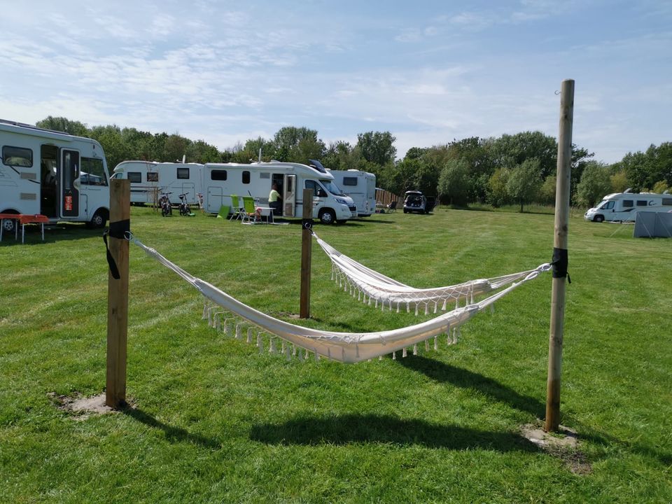 Elke kampeerplek heeft water, elektra (10A) en afvalwaterafvoer. Het sanitair is verwarmd en douchen kost niets extra’s. Huisdieren zijn welkom, zolang ze aangelijnd zijn.