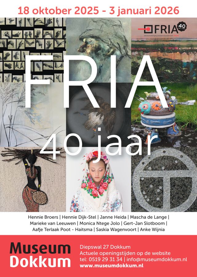 Kunstenaarsvereniging FRIA viert in 2025 haar veertigjarig jubileum met een reeks exposities in Noord Nederland. In Museum Dokkum exposeren tien kunstenaars van 18 oktober 2025 tot 3 januari 2026 hun werk.
