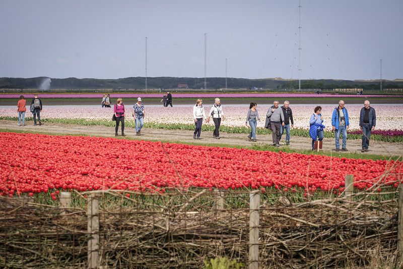 Wandel tussen bloeiende bollenvelden op 26 april 2026 in Julianadorp.