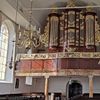 Organist Hans Nomen demonstreert het orgel in Warffum. Luisteraars kunnen vrij binnenwandelen en ook de speeltafel bekijken.