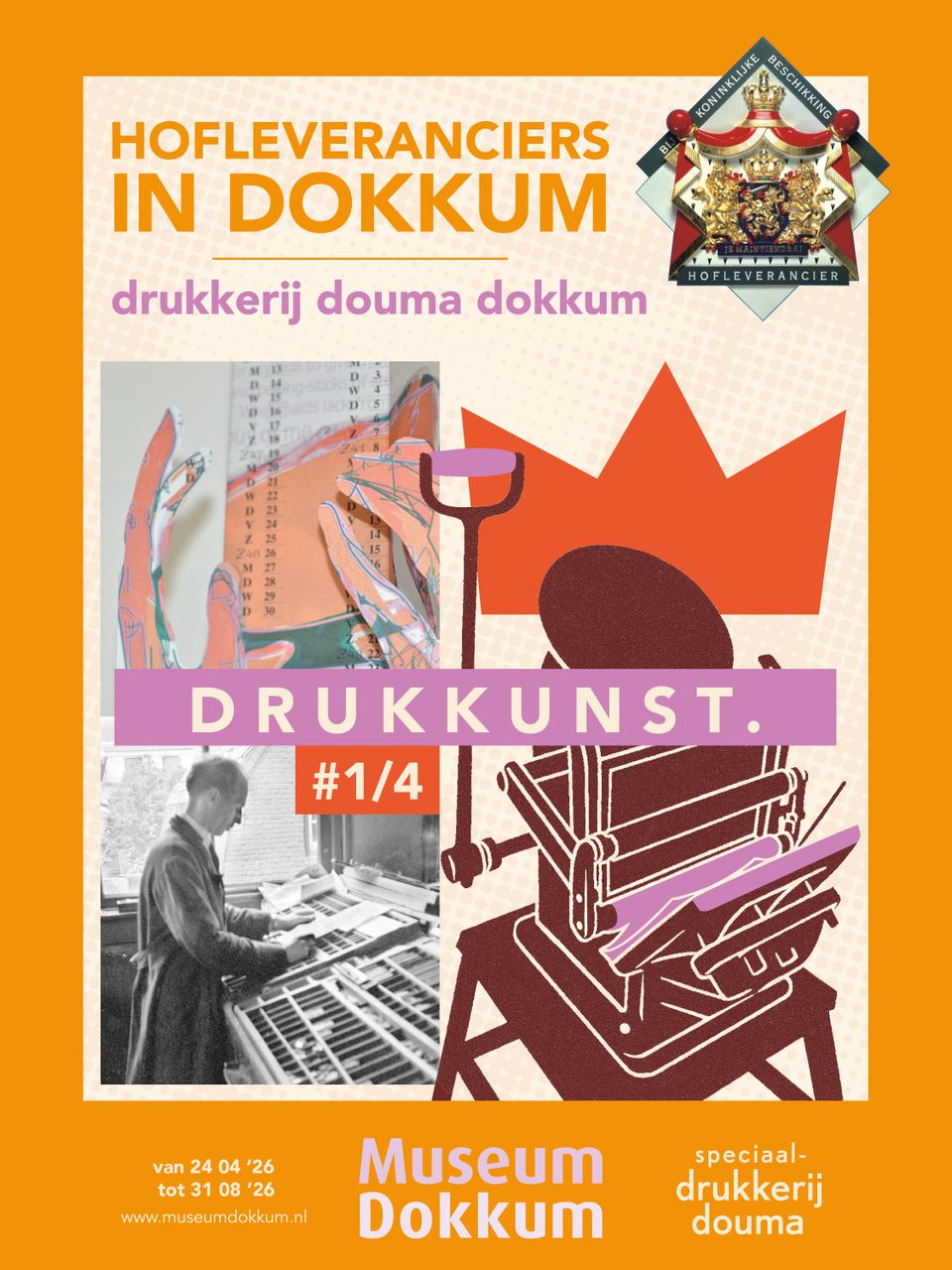 De tentoonstelling DRUKKUNST is het begin van een nieuwe reeks tentoonstellingen in Museum Dokkum over Dokkumer bedrijven die het predicaat Hofleverancier dragen. Bovendien valt de opening van deze expositie samen met een bijzonder moment: het bezoek van de koninklijke familie aan Dokkum tijdens Koningsdag.