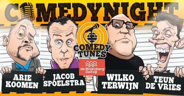 Een avond genieten van een flinke dosis humor, door ontspannen op een stoel te zitten! Op een Comedytunes comedynight zie je altijd drie van de beste comedians (Wilko Terwijn, Teun de Vries en Jacob Spoelstra) van Nederland en een MC (Arie Koomen) die de avond aan elkaar praat. De comedians vertellen in hoog tempo de meest absurde en hilarische verhalen. Je zult merken dat je begin te ontspannen, lachen en dat stresshormonen verdwijnen. Door de maffe verhalen van comedians maak je automatisch endorfine en gelukshormonen aan. Na een avondje Comedytunes Comedynights zul je merken dat je weer buiten staat met een fris en energiek gevoel. Gun jezelf die volle tank endorfine en dat frisse en energieke gevoel.