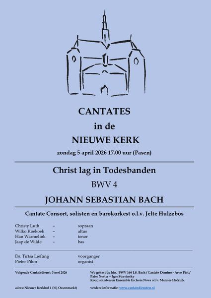 Christ lag in Todesbanden BWV 4 J.S.Bach Cantate Consort, solisten en barokorkest o.l.v. Jelte Hulzebos Christy Luth – sopraan Wilko Koekoek – altu...