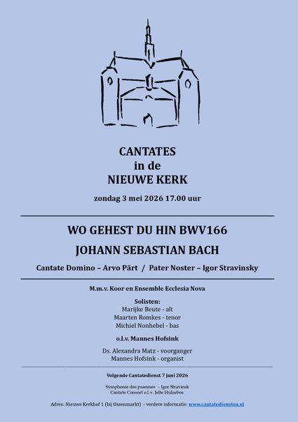 Wo gehest du hin? BWV 166 J.S. Bach Cantate Domino Arvo Pärt (1935) Pater Noster Igor Stravinsky (1882 – 1971) Koor, solisten en Ensemble Ecclesia...