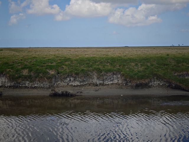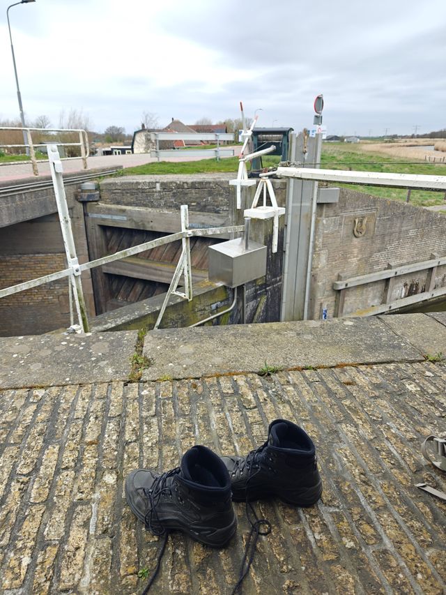 Ik zit in een klein huisje op de (eeuwenoude) sluis van Oudesluis. De wind giert langs de houten wanden en achter mij raast het autoverkeer. Ik kijk uit over het Oude Veer. Wandelend langs deze kronkelende getijdengeul stelde ik me zojuist voor voor hoe de Waddenzee zich hier een weg door het open landschap heeft gezocht.