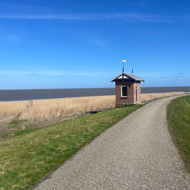 Een tussenstop op de dijk. Heerlijk in het zonnetje, semi oneindig zicht. Opnieuw een reflectie moment.