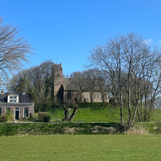Dat maakte me vrolijk al nodigde de harde wind niet uit om overal lekker te gaan zitten. Al met al was ik (te) vroeg bij het eindpunt, het prachtige witte kerkje in Wieringerwaard.
