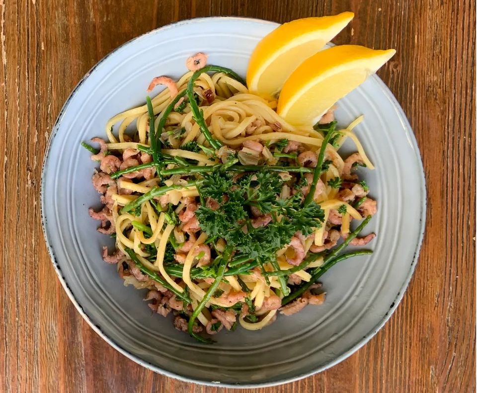 Pasta met garnalen uit Zoutkamp
