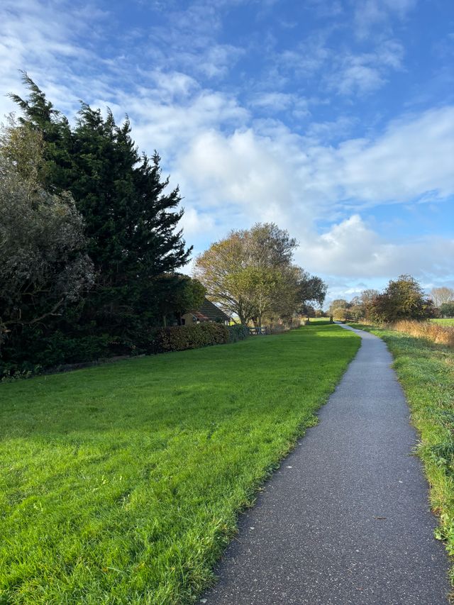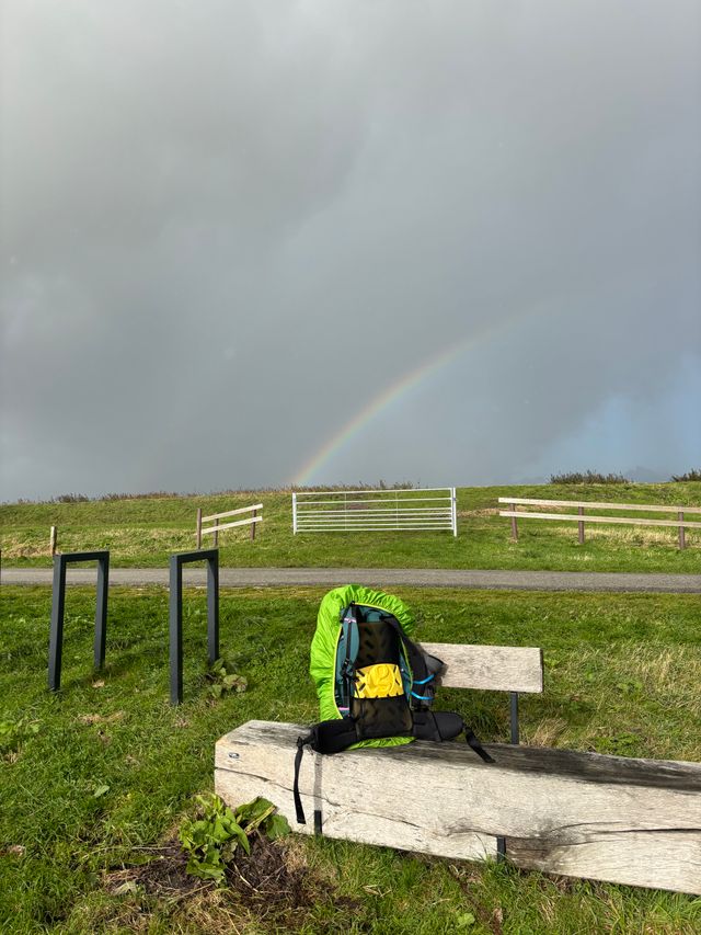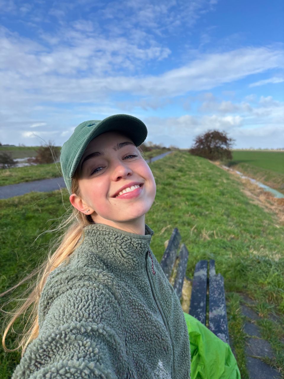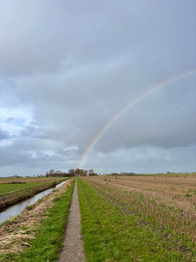 Het landschap helpt mee. De lucht hangt laag, het land ligt open. Regenbogen lichten kort op boven de weilanden, het water in de sloten beweegt traag mee met de wind. Wandelen brengt rust, maar ook overzicht. “Het relativeert. Alles wordt kleiner als je buiten bent.” Ze houdt even stil, kijkt naar de horizon. Geen haast, geen afleiding. Alleen het ritme van haar stappen. “Dat is genoeg,” zegt ze.
