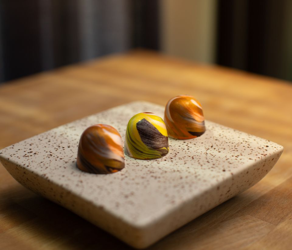 Doe het mengsel door een zeef en gelijk daarna meng, het liefst met een thermoblender, met de chocolade.