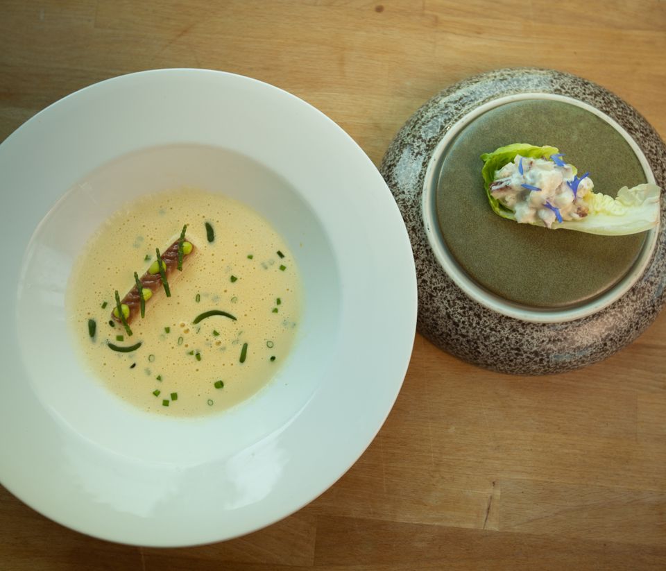 Gerookte IJsselmeer palingsoep met Waddenoester limoen crème fraîche