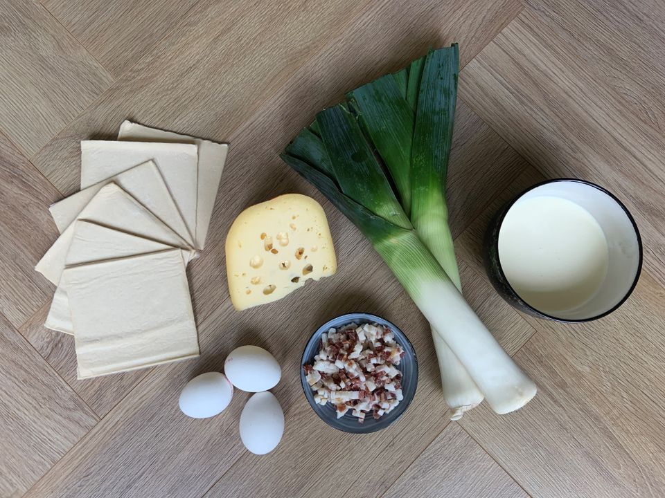 Ingrediënten voor een quiche met kaas uit Friesland