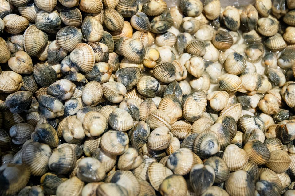 Spoel de kokkels goed schoon. Laat ze minimaal een half uur in water met wat zout staan. Laat de Waddenkokkels vervolgens goed uitlekken.