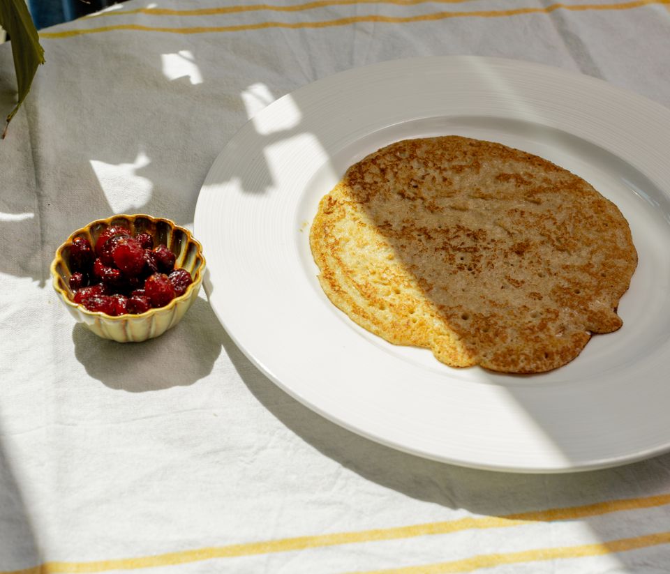 Bak de pannenkoeken gaar en serveer met de cranberry compote